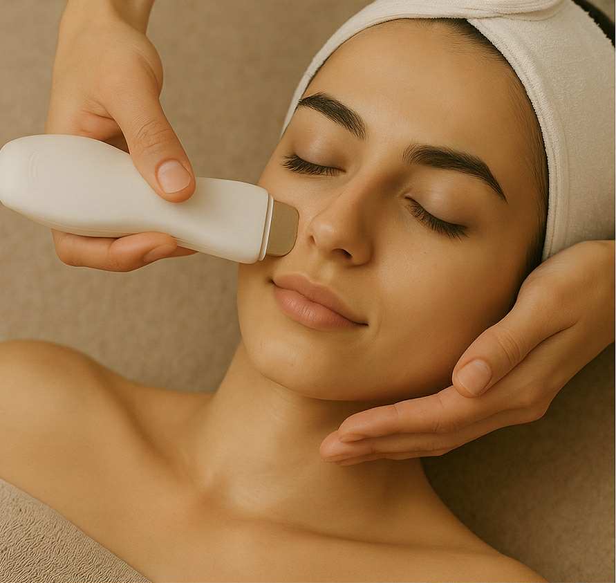Delikatny peeling ultradźwiękowy, który usuwa martwy naskórek i zanieczyszczenia, nie podrażniając skóry.